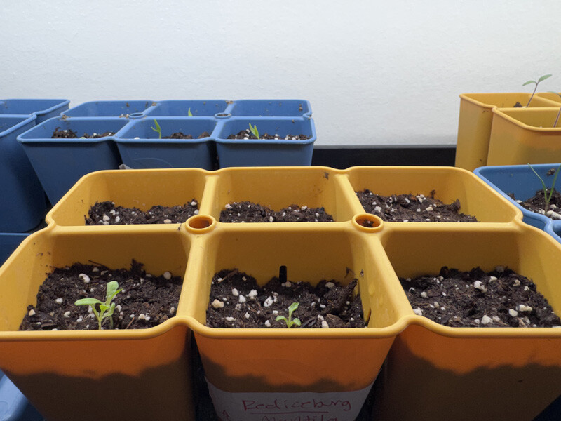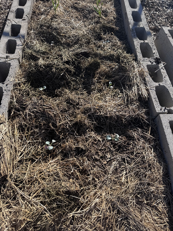 March 27, 2026: Transplanted 3 cabbage and 3 broccoli seedlings. Radishes have sprouted (about 1 week since planting)