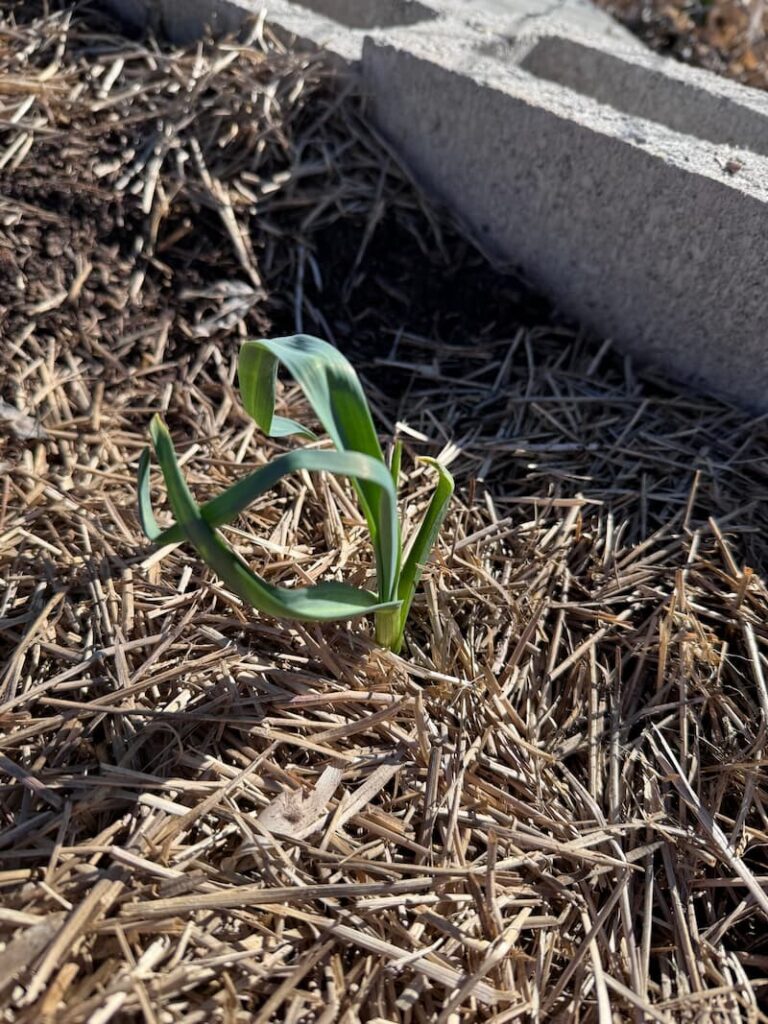 Also checked on garlic and found it had sprouted nicely over the winter (October 2025 planting)