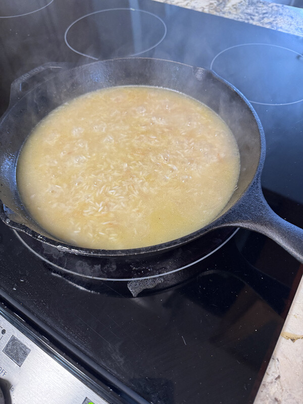 - Add the rice and broth and bring to a boil